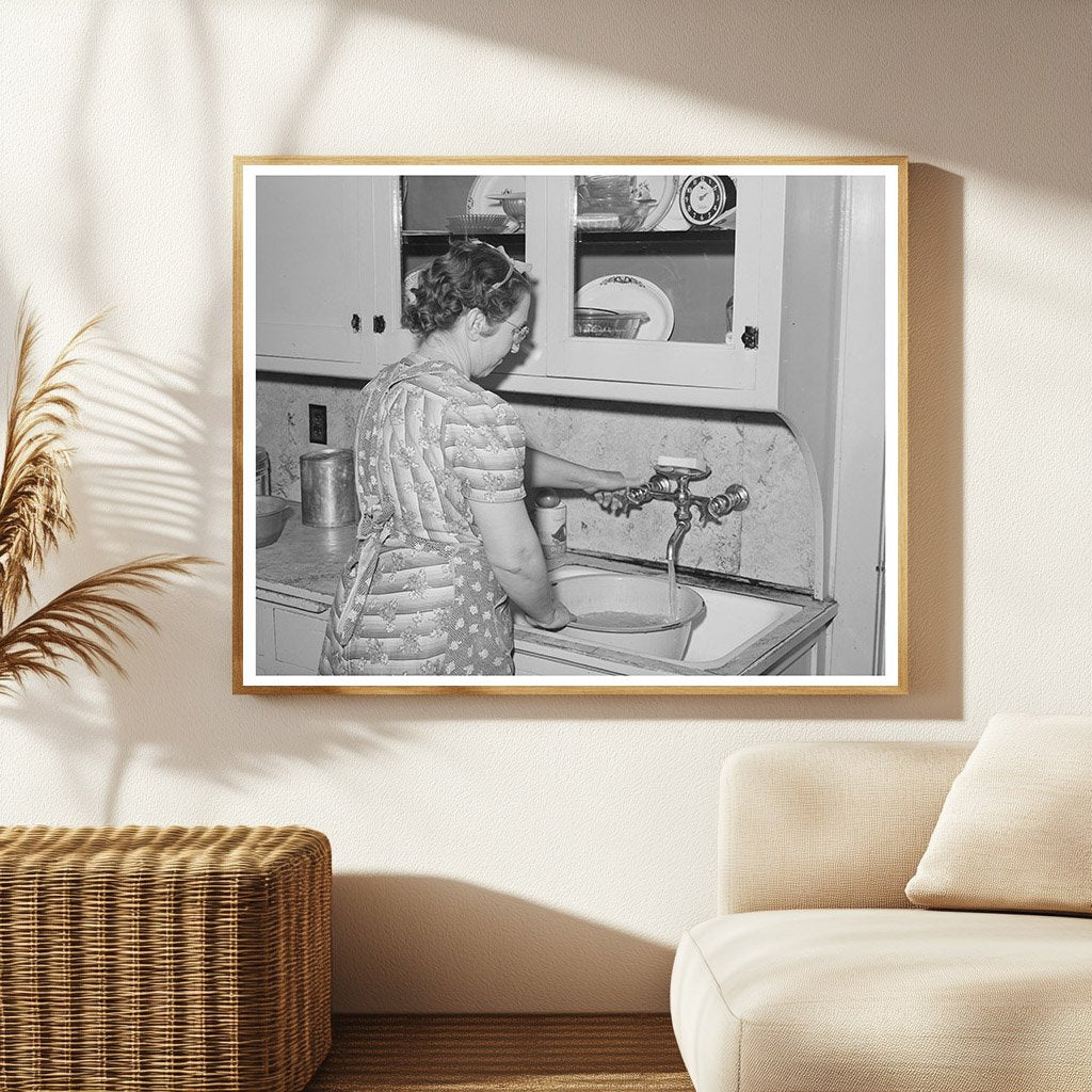 A vintage image from October 1940 shows running water in a Mormon farmers home in Santa Clara, Utah. This photograph captured the efficient management of culinary water in communal farming settings. It reflects the agricultural practices and water conservation methods used by farmers in Washington County, Utah during that time.