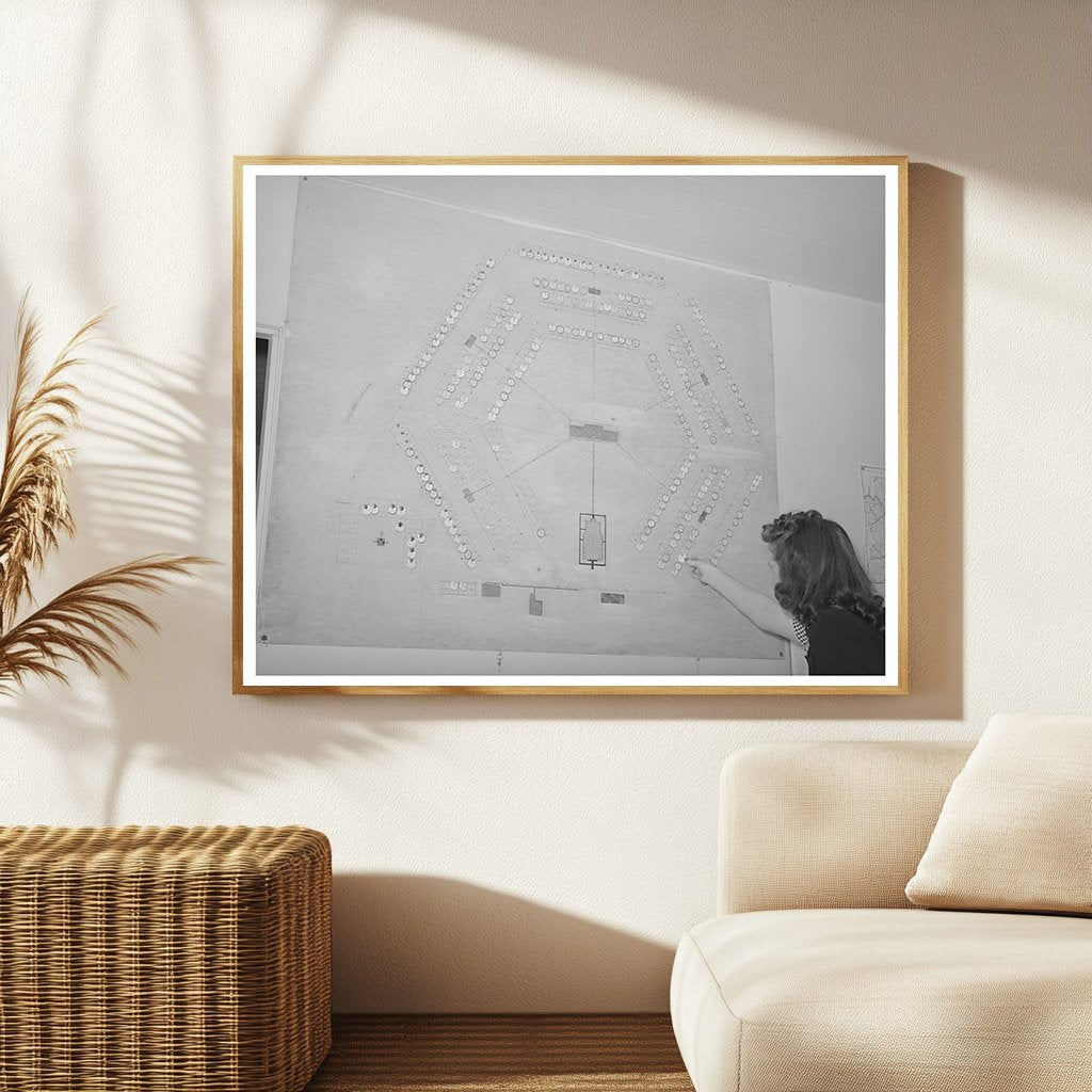 This vintage image captures a chart showing the occupation of shelters at the Agua Fria migratory labor camp in Maricopa County, Arizona. Created in May 1940 and later published in 1944, this piece from the FSA/OWI Collection offers historical insight into the living conditions faced by migrant laborers during that era.