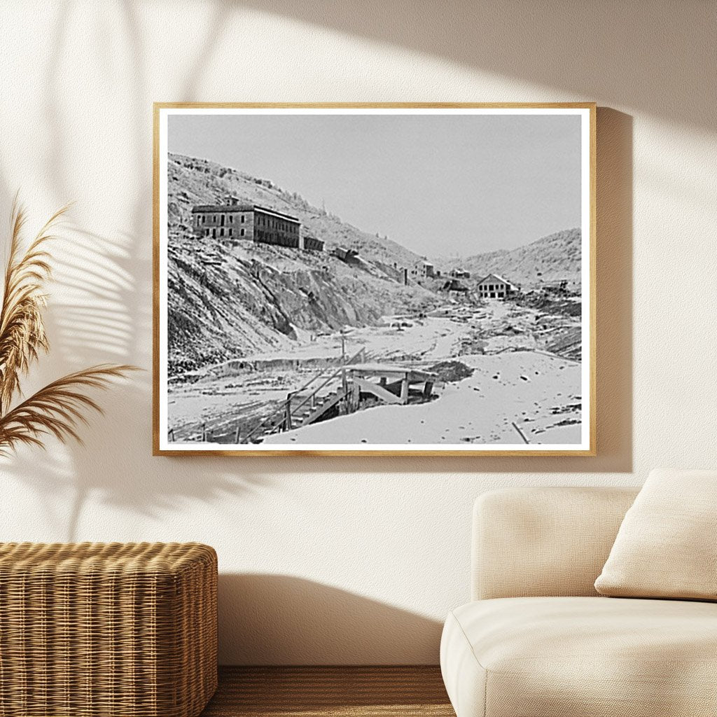 This vintage image showcases Cambria, Wyoming, a ghost mining town in Weston County. Taken in November 1937, it documents the remnants of a once-thriving community from the coal mining era. The photograph is part of the FSA/OWI Collection, preserving history and offering insight into early 20th-century American life.