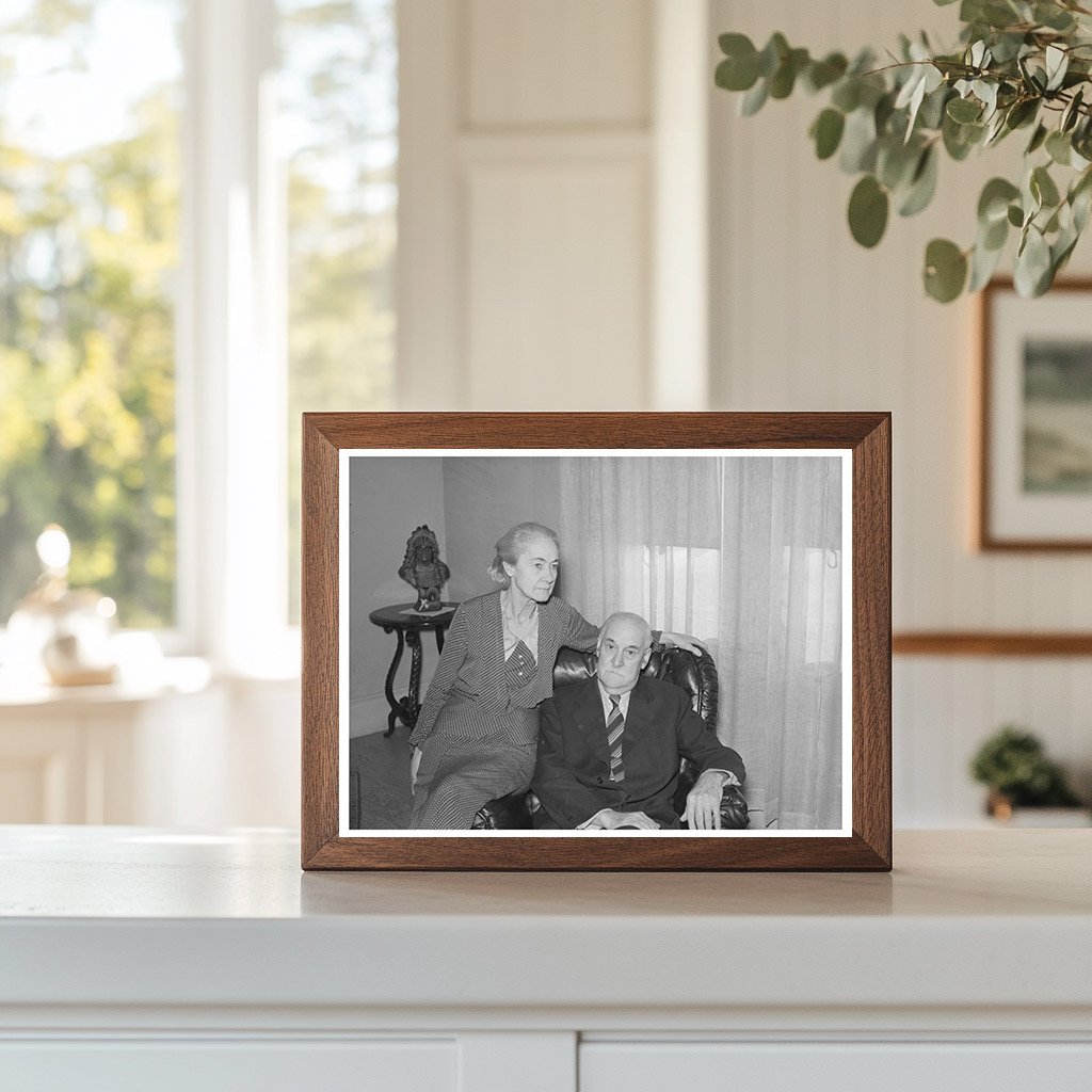 This vintage photograph features Mr. and Mrs. Jim Hardin in their home near Two Bit Creek close to Deadwood South Dakota taken in November 1937. Hardin was a mining promoter during a period of economic hardship. The image provides insight into the lives of those impacted by the gold mining industry and the eras economic changes.