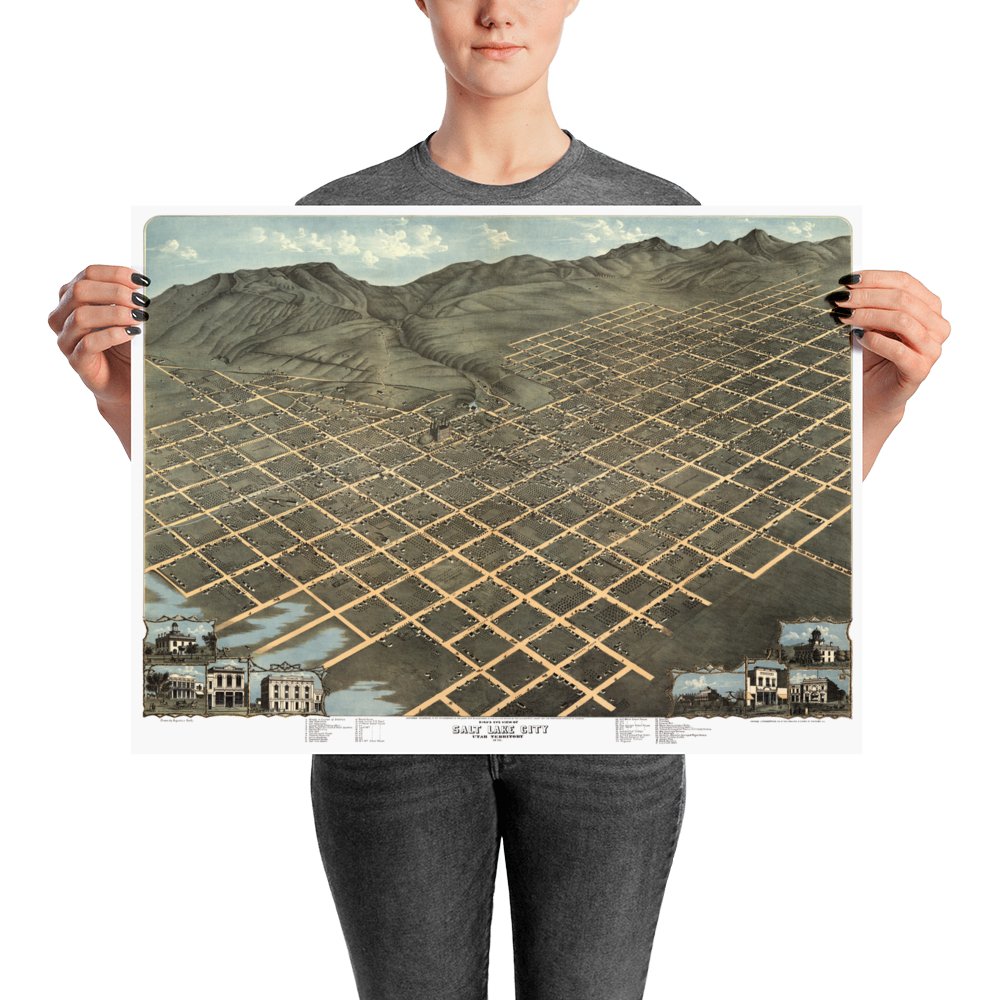 A statement in any room, each reproduction is printed on museum quality, archival paper using a restored map of Salt Lake City from 1870. Click "Add to Cart" to proceed to safe and secure checkout via PayPal, Visa, MasterCard, Discover, American Express, Amazon, Google, or Apple Pay.
