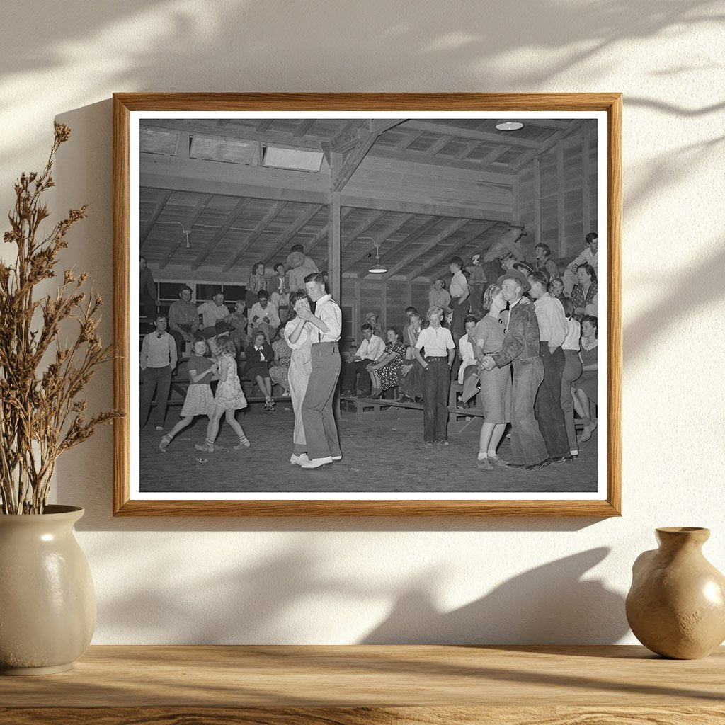 Experience a vibrant Saturday night dance at the Agua Fria migratory labor camp in Maricopa County Arizona from May 1940. This vintage image reveals the social life of laborers during a significant era. The community building served as a gathering place, reflecting the cultural exchanges and interactions of the time.