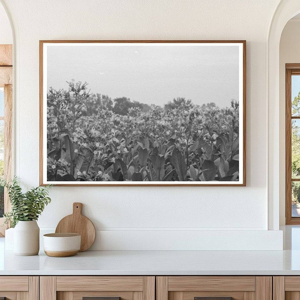 A field of flowering tobacco thrives near Berlin, Connecticut, in October 1939. This image is part of the FSA/OWI Collection, which documents agricultural practices in the United States. Tobacco farming played a significant role in Connecticuts economy, and the region was known for high-quality tobacco production during this time.