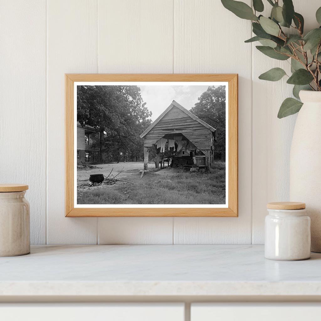 This vintage photograph captures a well house in Washington, Wilkes County, Georgia. Part of the Carnegie Survey of the Architecture of the South, the image documents early 20th-century architectural styles and rural life in Georgia. The well house, a crucial structure for accessing groundwater, reflects the practical needs of the time while showcasing local building techniques.